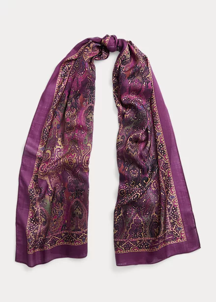 Realised in a luxuriously soft blend of wool and silk, the Anjali wrap scarf is distinguished by the season’s elegant paisley motif. A script “Lauren Ralph Lauren” logo accents the corner for an iconic finish.