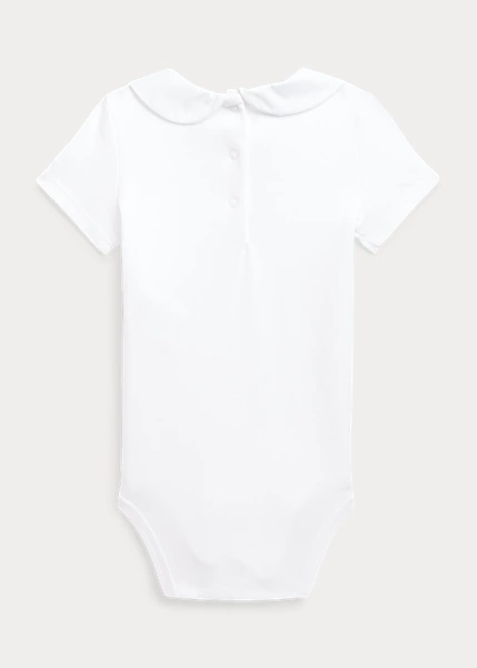 Part of our exclusive Baby collection, this one-piece is crafted with soft cotton interlock and detailed with charming bee-inspired embroidery on the broadcloth collar. Ralph Lauren partners with Better Cotton™ to improve cotton farming globally. Better Cotton trains farmers to use water efficiently, care for the health of the soil and natural habitats, reduce use of the most harmful chemicals and implement the principles of decent work.