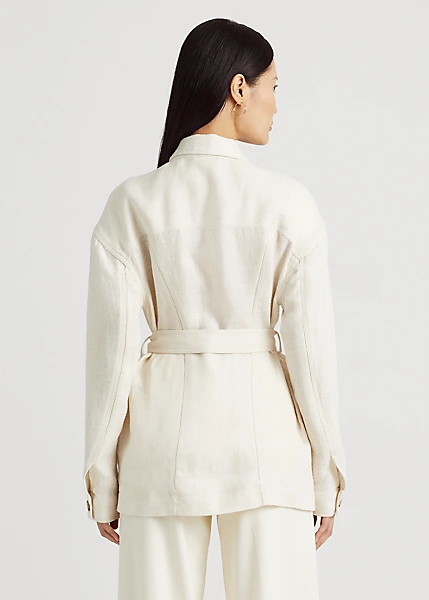 Rendered in lightweight herringbone linen, this jacket unites a streamlined, shirting-inspired silhouette with an effortless self-belt. Sophisticated “Lauren Ralph Lauren”-engraved horn-effect buttons complete the look.