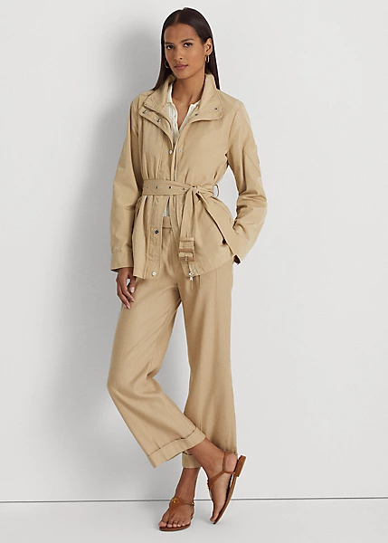 A fashionable and practical layering piece for the season, this funnelneck jacket is designed with a myriad of pockets, perfect for storing your necessities. “LRL”-engraved snaps and a logo patch on the left arm afford signature style, while a buckled self-belt accentuates the waist.