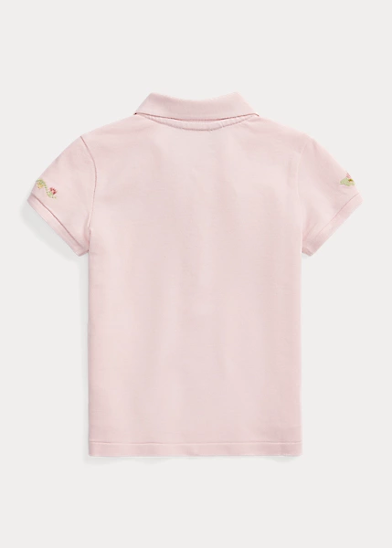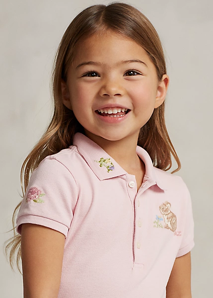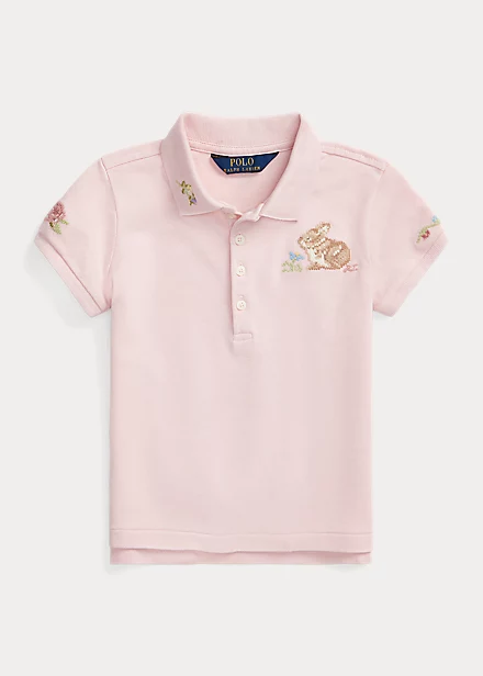 Made with a comfortable stretch blend, this Polo shirt gets a sweet springtime twist with embroidered flowers and a bunny. Ralph Lauren partners with Better Cottonâ„¢ to improve cotton farming globally. Better Cotton trains farmers to use water efficiently, care for the health of the soil and natural habitats, reduce use of the most harmful chemicals and implement the principles of decent work.