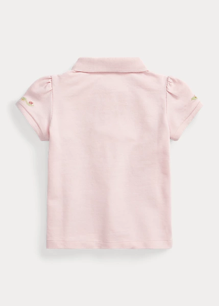 Made with a comfortable stretch blend, this Polo shirt gets a sweet springtime twist with embroidered flowers and a bunny. Ralph Lauren partners with Better Cottonâ„¢ to improve cotton farming globally. Better Cotton trains farmers to use water efficiently, care for the health of the soil and natural habitats, reduce use of the most harmful chemicals and implement the principles of decent work.