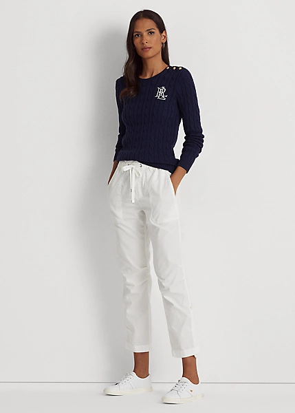Knit with combed cotton for an unbelievably soft hand, this classic cable-knit jumper is distinguished by crest-embossed buttons on the shoulder and an “LRL”-embroidered logo on the chest. Ralph Lauren partners with Better Cottonâ„¢ to improve cotton farming globally.