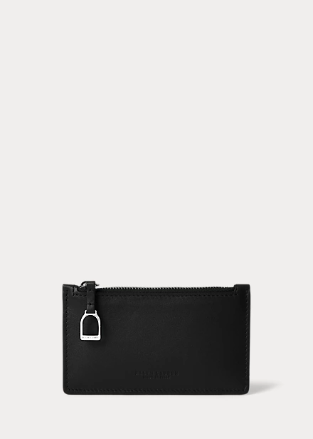 Part of the Ralph Lauren Welington collection, this zip card case is exquisitely handcrafted from full-grain calfskin and lined with lambskin. A modern reflection of Ralph Lauren’s equestrian heritage, it boasts a lambskin pull tab with polished stirrup hardware engraved with “Ralph Lauren”. Its studied construction reveals five exterior credit card slots on the back and a debossed “Ralph Lauren Made in Italy” logo on the front. Hand-finished details, like edge-painting and whipstitching, highlight Mr Lauren’s dedication to fine workmanship.