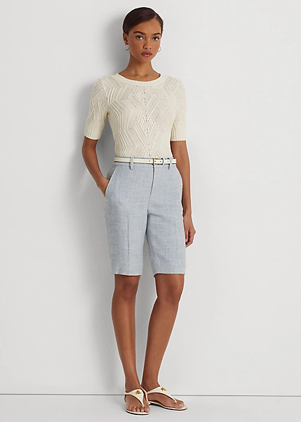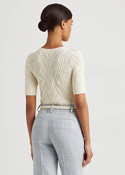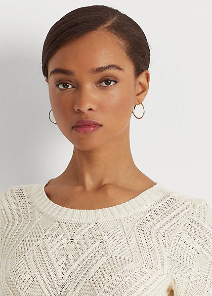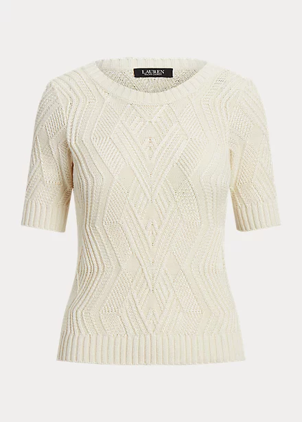 Rendered in a soft cotton blend with a hint of shimmer, this slim-fitting jumper with elbow-length sleeves is characterised by an elegant ballet neckline and an engineered geometric pattern. Ralph Lauren partners with Better Cotton™ to improve cotton farming globally.