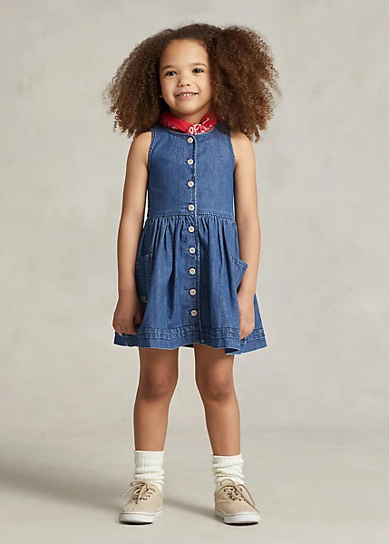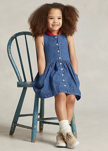 Detailed with patch pockets and pintucks on the hem, this lightweight denim dress is a cute take on Americana style.