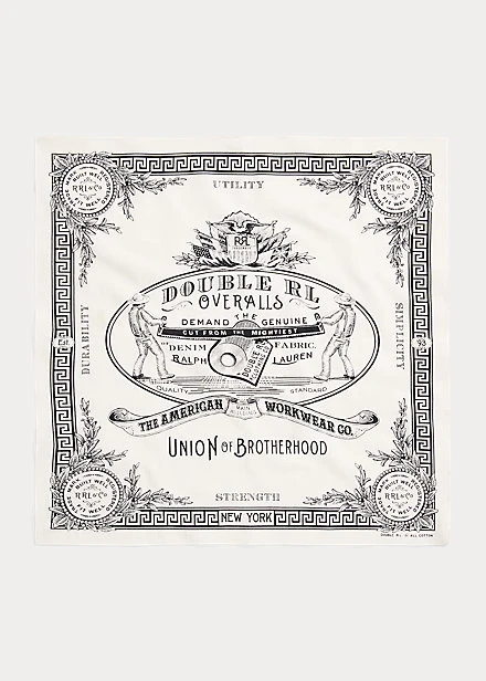 - “Double RL Overalls Demand the Genuine Union of Brotherhood” graphic printed on the centre. “RRL & Co” printed on each corner.
