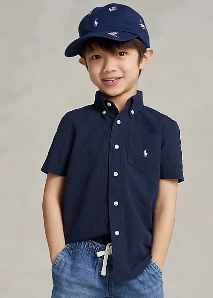Embroidered with our signature Pony, this cotton seersucker shirt is a Polo must-have for the warmer months. Ralph Lauren partners with Better Cottonâ„¢ to improve cotton farming globally. Better Cotton trains farmers to use water efficiently, care for the health of the soil and natural habitats, reduce use of the most harmful chemicals and implement the principles of decent work.
