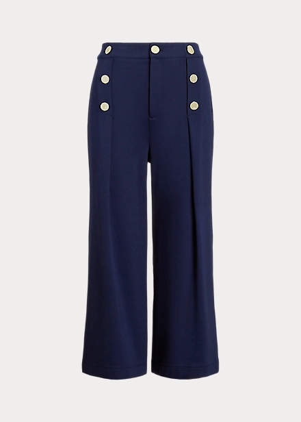 “LRL”-engraved buttons bring a nautical-inspired sensibility to these cropped ponte trousers, which are designed with crisp pleats and a billowing wide-leg silhouette.