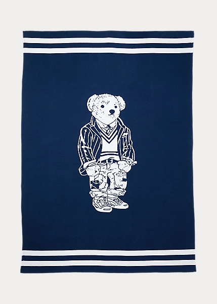 Graphic stripes accent the top and bottom of this soft cotton throw blanket, which features our signature Polo Bear embroidered on the front. The OEKO-TEX® Standard 100 certification ensures it has been tested for harmful substances and produced sustainably.