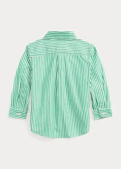 A floral motif and pleats on the hem make this cotton dress a sweet pick for warm-weather occasions. Ralph Lauren partners with Better Cottonâ„¢ to improve cotton farming globally. Better Cotton trains farmers to use water efficiently, care for the health of the soil and natural habitats, reduce use of the most harmful chemicals and implement the principles of decent work.