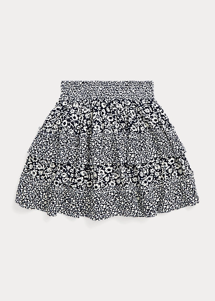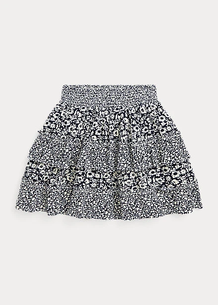 Ruffled trim and a mix of floral prints give this tiered skirt a cute warm-weather look.