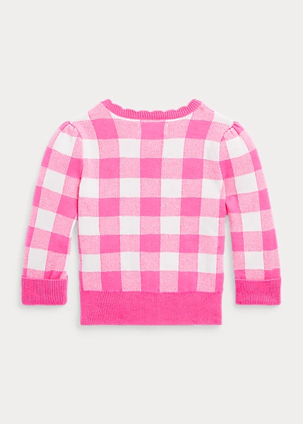 An oversized gingham motif and mismatched buttons add charm to this lightweight cardigan. Ralph Lauren partners with Better Cotton™ to improve cotton farming globally. Better Cotton trains farmers to use water efficiently, care for the health of the soil and natural habitats, reduce use of the most harmful chemicals and implement the principles of decent work.