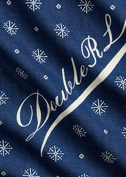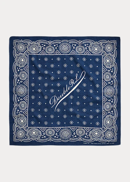 Made in Japan with lightweight woven cotton. Dyed with true indigo that will fade over time. Printed with a Western-inspired motif and the Double RL logo on the centre.