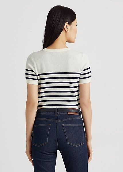 Timeless stripes and Lauren’s oversized script logo define the sophisticated character of this short-sleeve jumper. Cut for a slim-fitting silhouette, it’s crafted with combed cotton for an unbelievably soft hand. Ralph Lauren partners with Better Cotton™ to improve cotton farming globally.