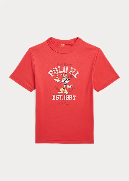 Part of our Lunar New Year collection, this cotton tee features a flocked print on the front to celebrate the Year of the Rabbit. Ralph Lauren partners with Better Cottonâ„¢ to improve cotton farming globally. Better Cotton trains farmers to use water efficiently, care for the health of the soil and natural habitats, reduce use of the most harmful chemicals and implement the principles of decent work.