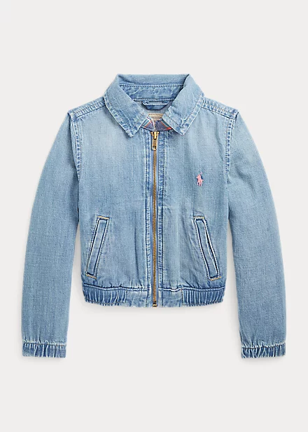 A cute pick for transitional days, this layer is made with lightweight cotton denim and detailed with colourful madras on the undercollar. Ralph Lauren partners with Better Cottonâ„¢ to improve cotton farming globally. Better Cotton trains farmers to use water efficiently, care for the health of the soil and natural habitats, reduce use of the most harmful chemicals and implement the principles of decent work.