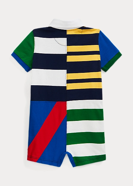 Washed for added softness, this jersey one-piece features a bold patchwork design and an embroidered “Polo Summer Classic” crest on the chest.