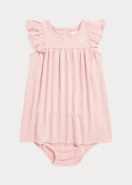 A delicate pointelle knit and picot-stitch trim make this washed cotton dress extra cute.