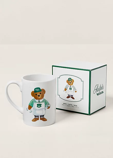This playful porcelain mug showcases signature graphics, including a holiday barista-inspired iteration of the Polo Bear and our iconic Ralph’s Coffee cup logo.