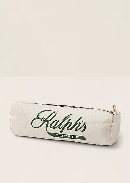 This raw canvas pencil pouch celebrates Ralph’s Coffee, Ralph Lauren’s spirited interpretation of classic coffee shop style.