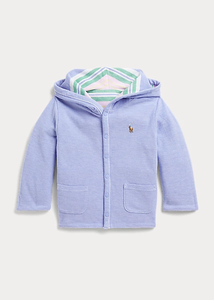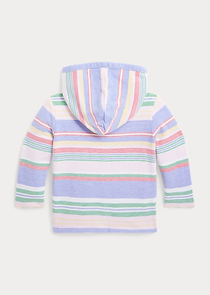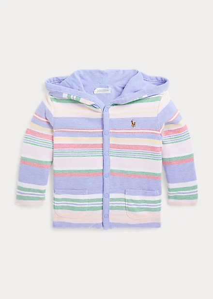 This hooded jacket is made with our breathable cotton mesh and reverses between colourful stripes and a solid-hued side. Ralph Lauren partners with Better Cottonâ„¢ to improve cotton farming globally. Better Cotton trains farmers to use water efficiently, care for the health of the soil and natural habitats, reduce use of the most harmful chemicals and implement the principles of decent work.