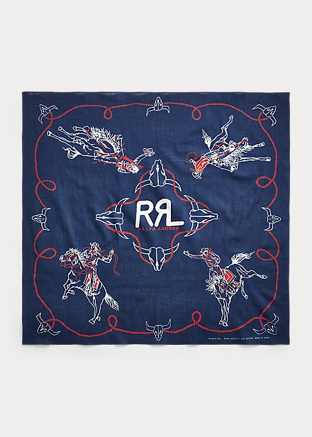 Made in Japan from lightweight woven cotton. Screen-printed with a ’50s rodeo-inspired motif and the Double RL Ranch logo on the centre.