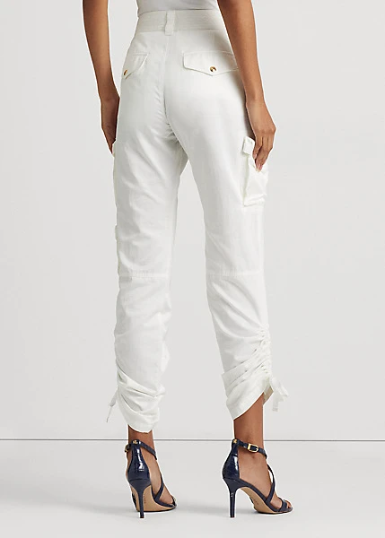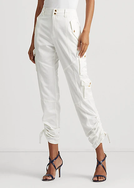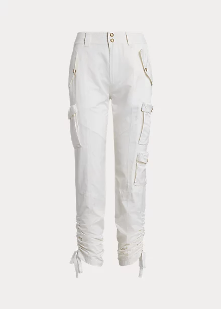 Cut from lightweight shantung, these cargo trousers stay true to traditional styling, with elements like utility-inspired pocketing and exposed zips. Featuring a flattering high rise, these trousers are embellished with self-tie accents on the cuffs for an effortless finish.