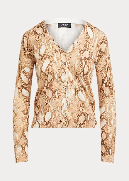 Showcasing the season’s bold snakeskin print, this cosy cotton-blend cardigan with signature engraved buttons is a contemporary take on an everyday essential. Ralph Lauren partners with Better Cottonâ„¢ to improve cotton farming globally.