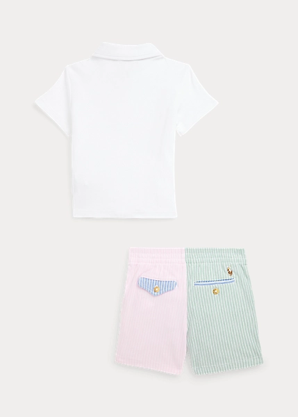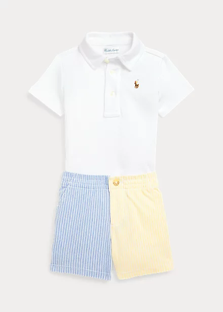 This set pairs a cotton interlock Polo shirt with mesh shorts that feature a colour-blocked design in pastel hues. Ralph Lauren partners with Better Cottonâ„¢ to improve cotton farming globally. Better Cotton trains farmers to use water efficiently, care for the health of the soil and natural habitats, reduce use of the most harmful chemicals and implement the principles of decent work.