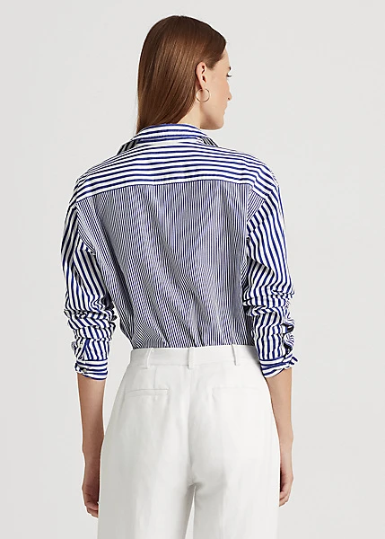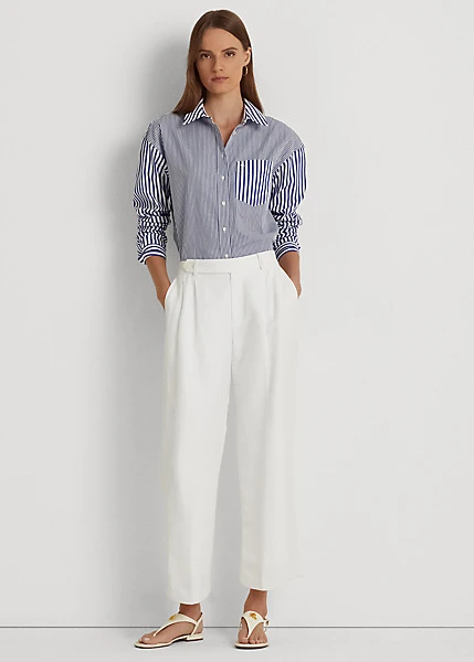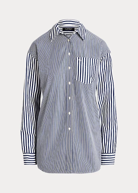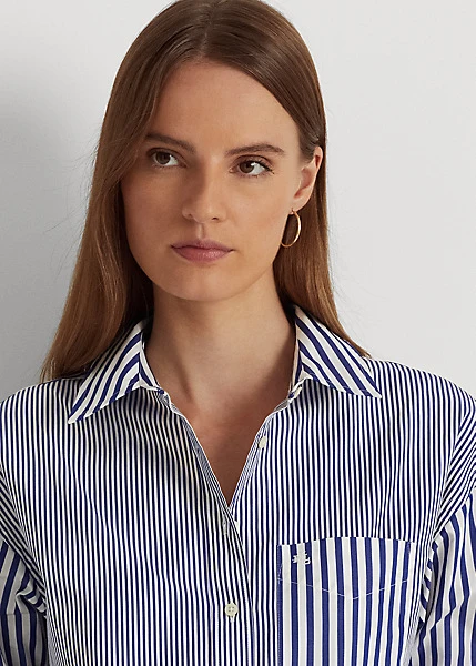 Cut from soft, airy cotton broadcloth, this crisp striped shirt features a relaxed fit for maximum comfort. An “LRL”-embroidered logo on the pocket and “Lauren Ralph Lauren”-engraved pearlised buttons afford signature style.