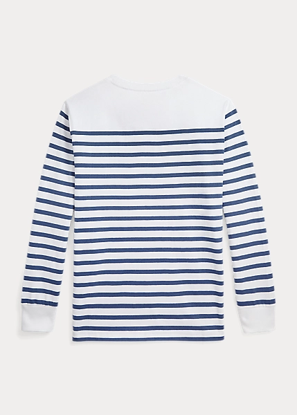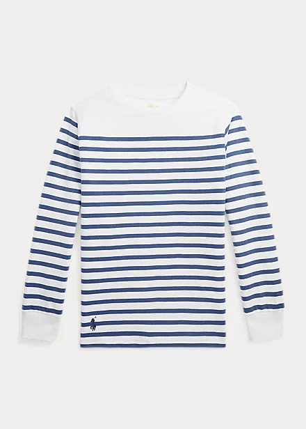 This crewneck tee unites nautical-inspired stripes with cotton jersey fabric that’s been washed for added softness.