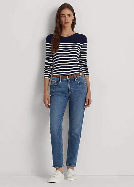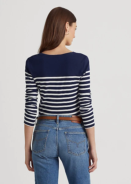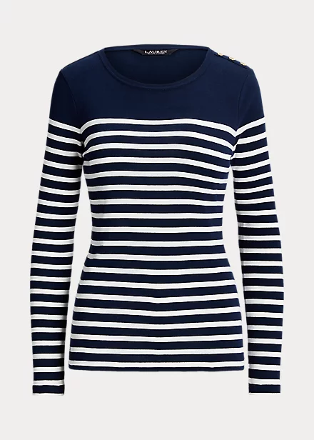 “LRL”-engraved snaps on the shoulder and an “LRL”-embroidered logo on the hem bring signature style to this classic striped tee. It’s made with lightweight cotton for a soft hand.