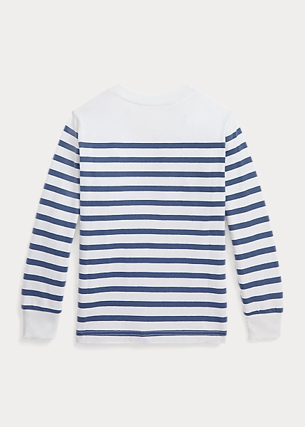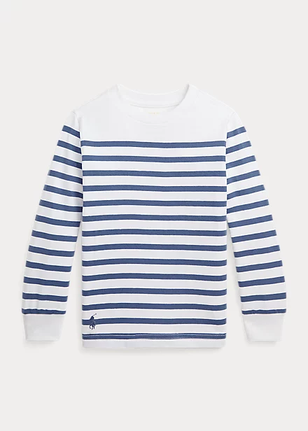 This crewneck tee unites nautical-inspired stripes with cotton jersey fabric that’s been washed for added softness.