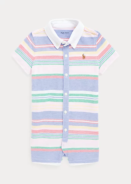 This one-piece combines the look of an oxford shirt with the comfort of our breathable cotton mesh fabric. Ralph Lauren partners with Better Cottonâ„¢ to improve cotton farming globally. Better Cotton trains farmers to use water efficiently, care for the health of the soil and natural habitats, reduce use of the most harmful chemicals and implement the principles of decent work.