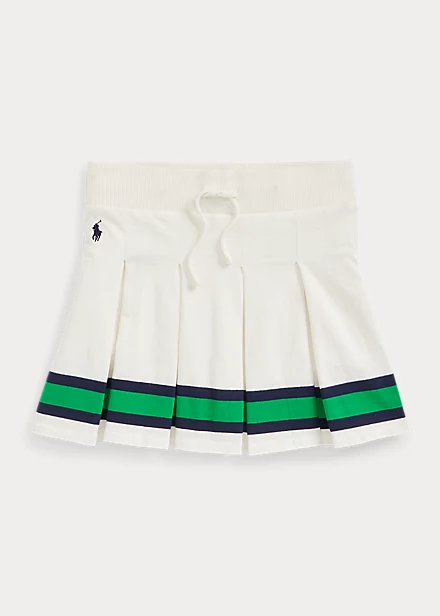 This tennis-inspired style features all-over pleats and an interior stretch jersey short for added comfort.