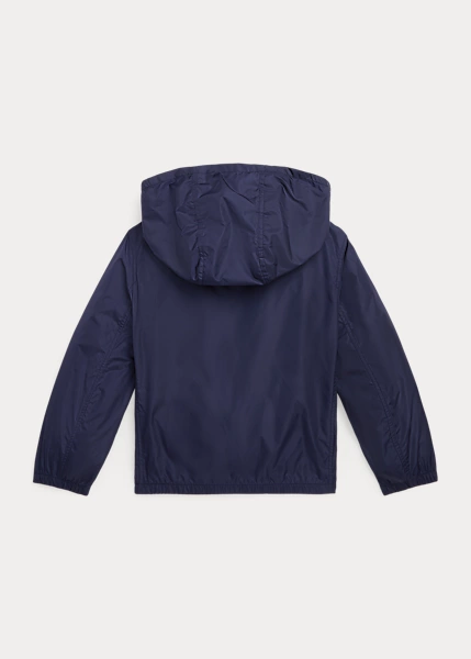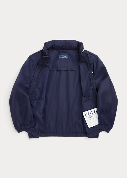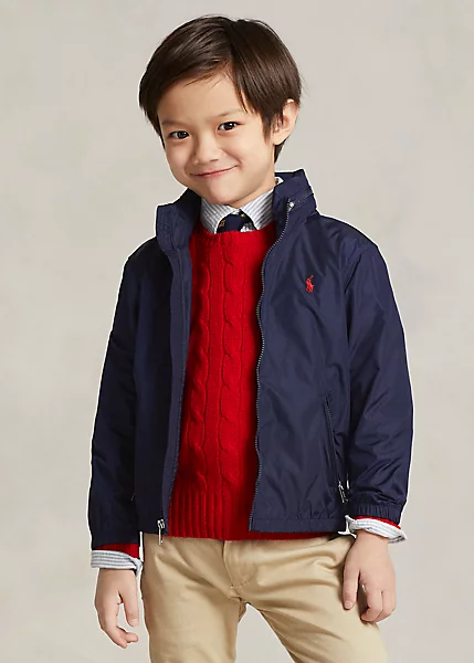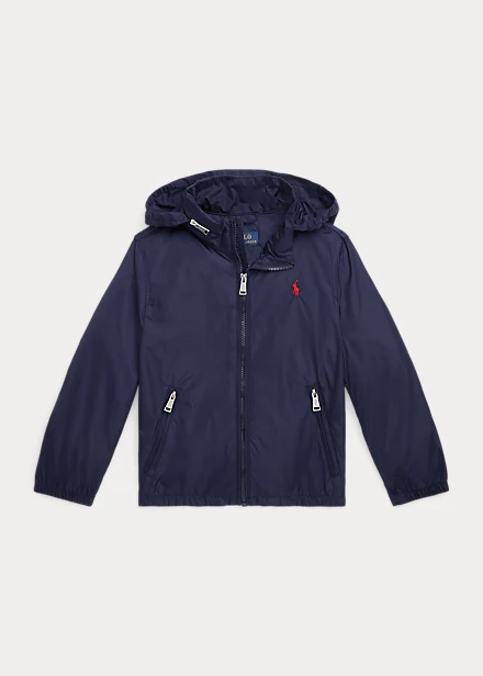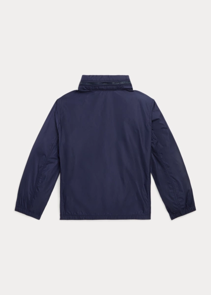 This classic mockneck jacket is treated to repel water and built with a stowaway hood for added versatility.