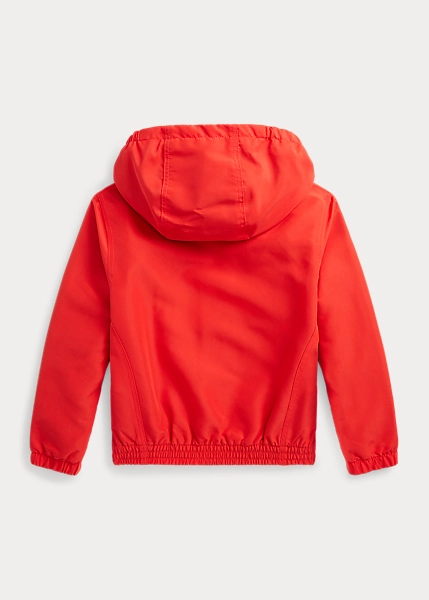 This hooded jacket features a water-repellent shell and a packable design for on-the-go convenience.